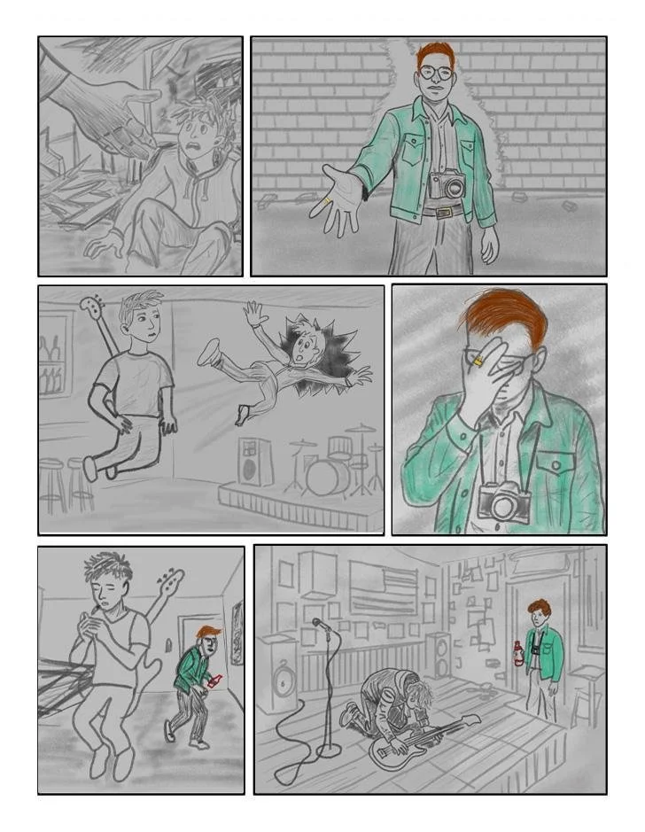 Including a merger with DC comic character Jimmy Olsen and how he would help Scott in a fight with Todd Ingram. Showcasing script breakdown into a comic strip.